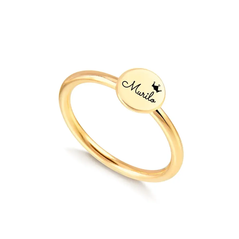 Anel círculo com nome e mini coroa a laser